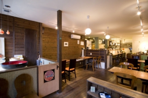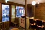 手打ち蕎麦のお店。店主の思いは、お店の名前のように木の家具が使い込まれるうちに飴色になるようにとのコンセプトで進めました。内装工事では職人さんと共に店主がヒノキの壁を飴色に塗り直すなど手を加えて居心地のよい店内となっています。